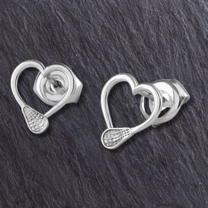 Elevate your style with these stunning sterling silver stud earrings, a tribute to your passion for lacrosse. Crafted with meticulous attention to detail, they're the ideal accessory to express your love for the game. Order your Lacrosse Stick Hearts Stud Earrings today and let your heart beat with the rhythm of lacrosse.